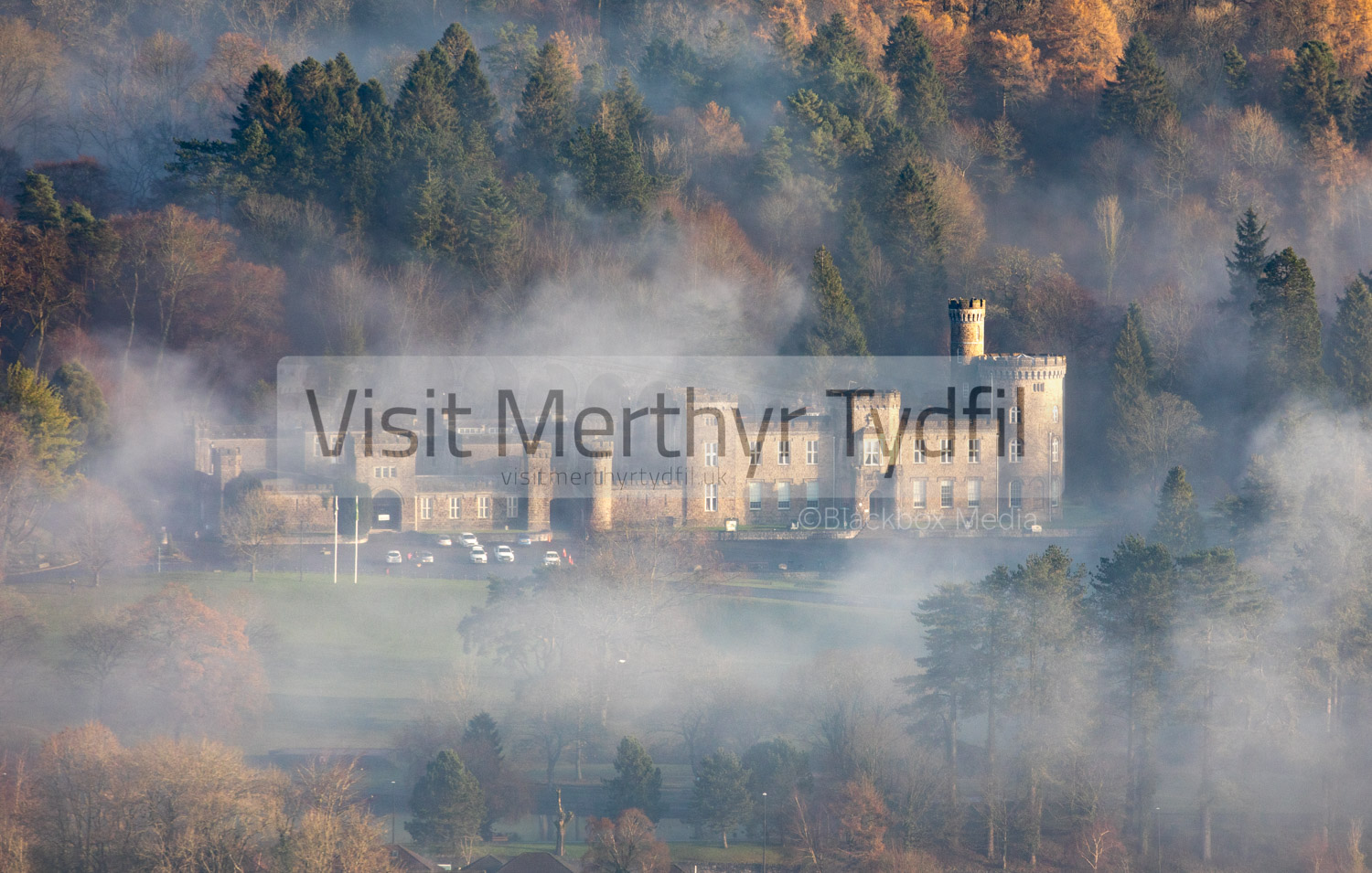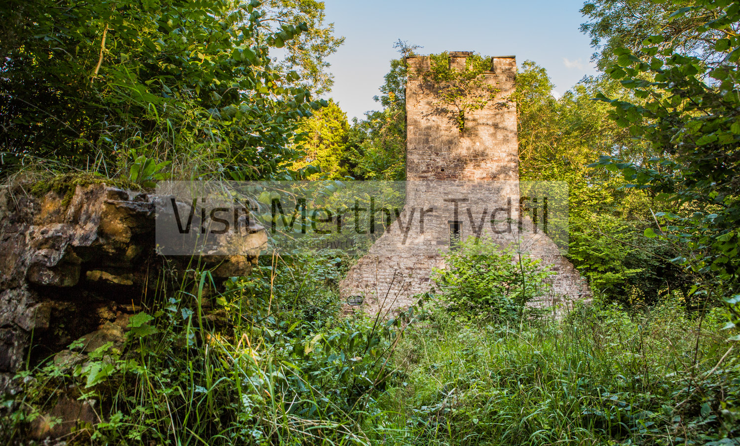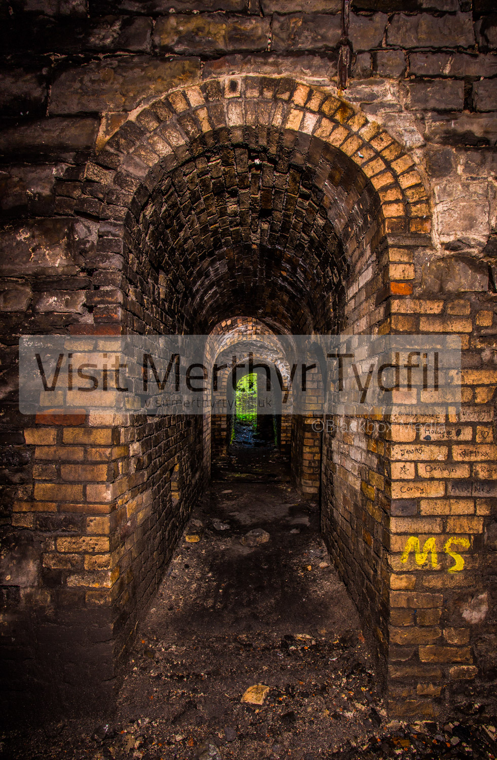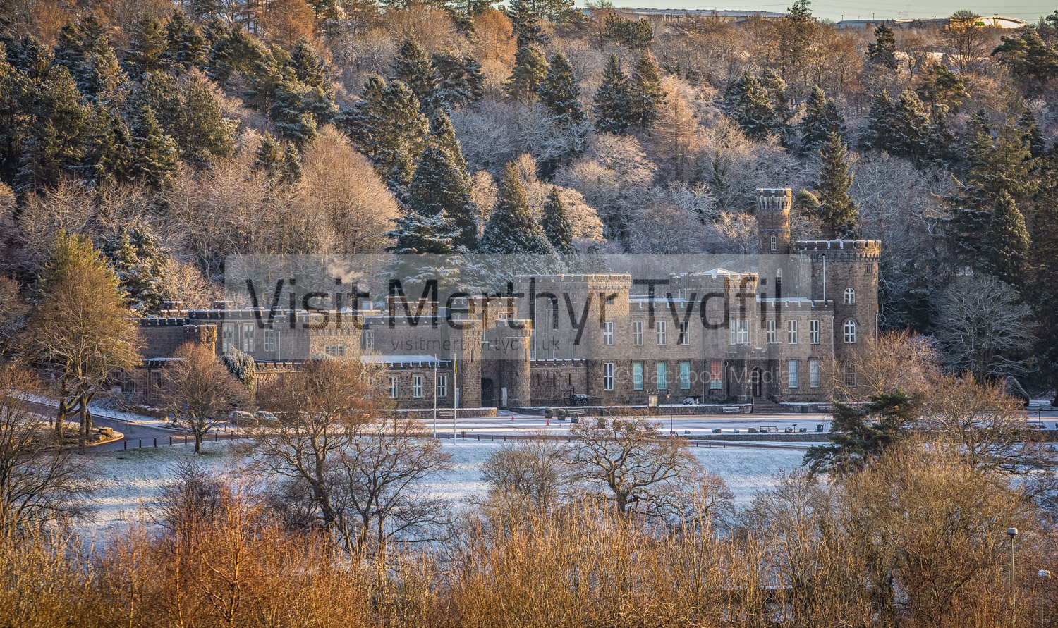A unique view of the Cefn Coed viaduct with Cyfarthfa Castle framed in one of the arches