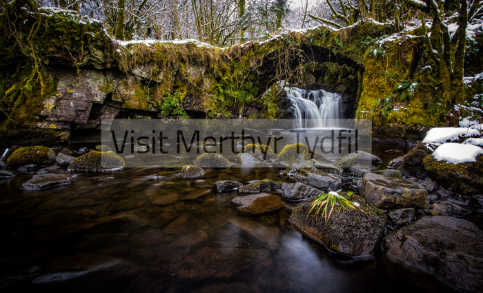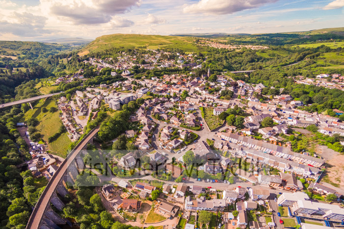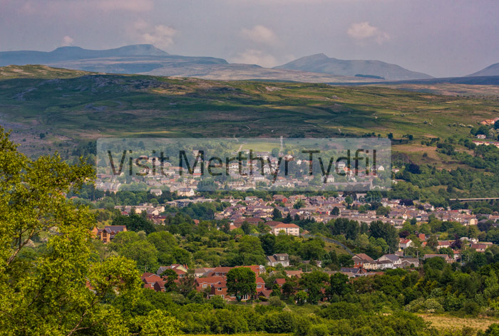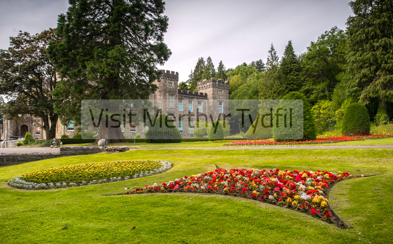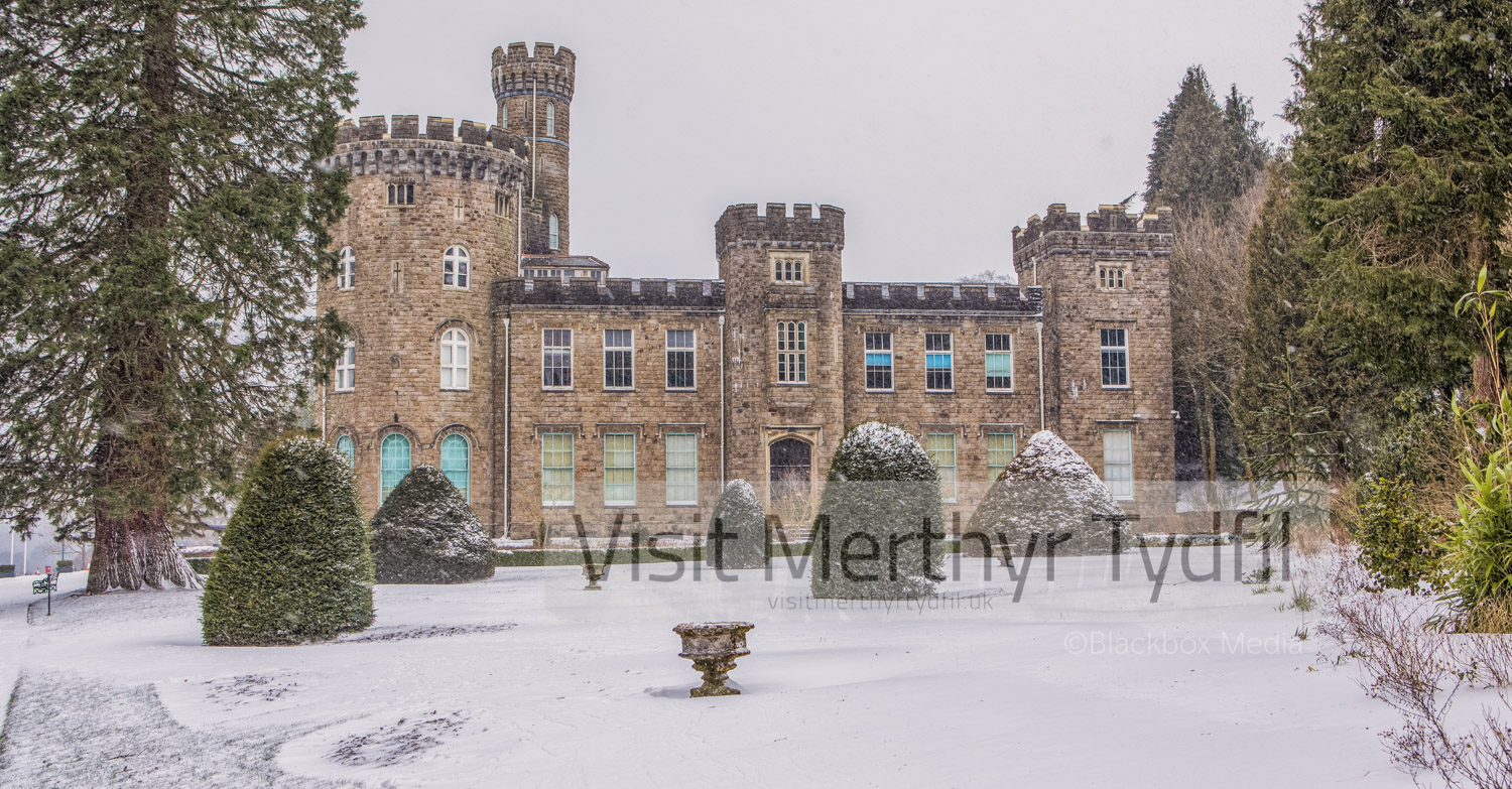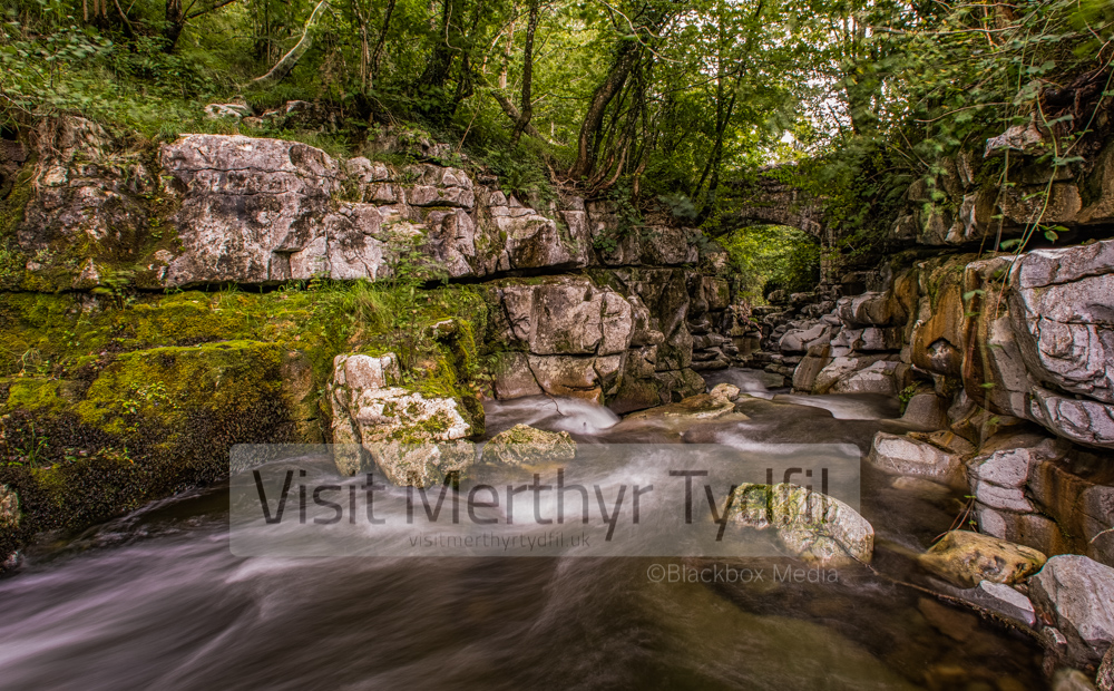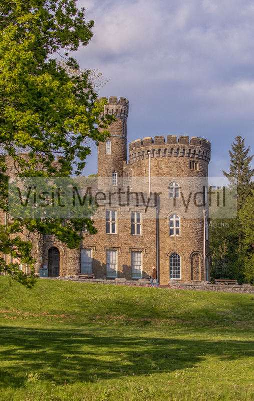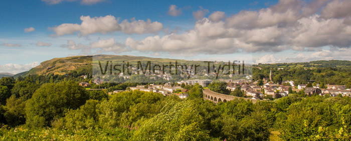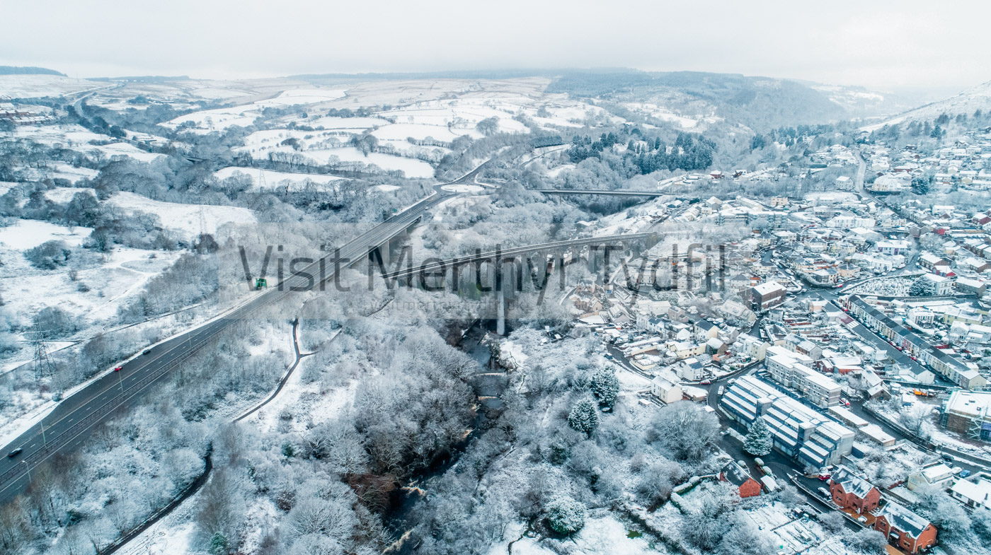 A unique view of the Cefn Coed viaduct with Cyfarthfa Castle framed in one of the arches