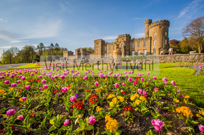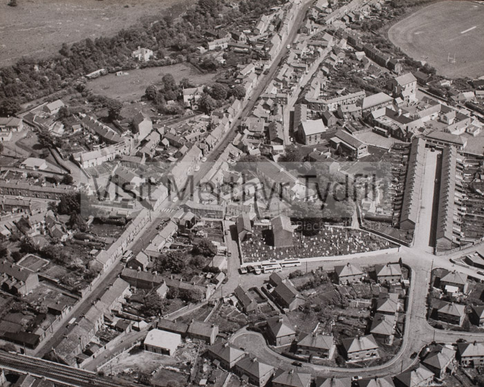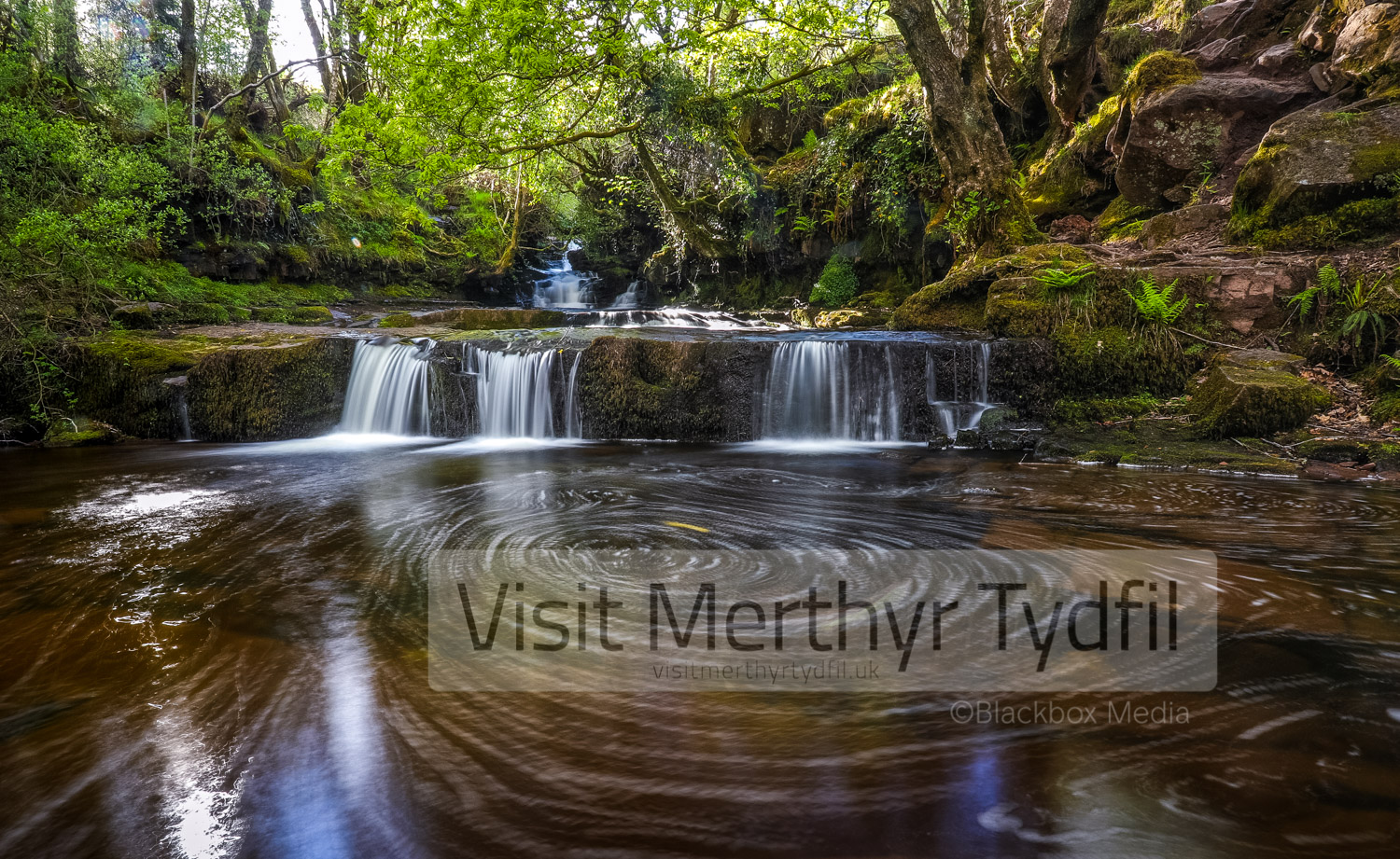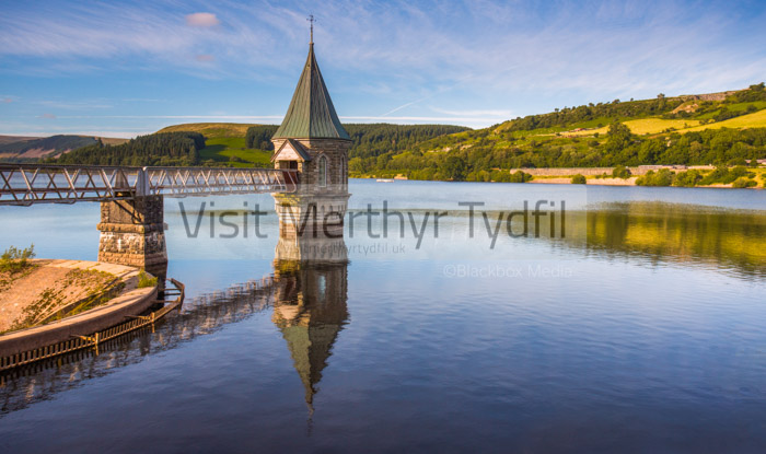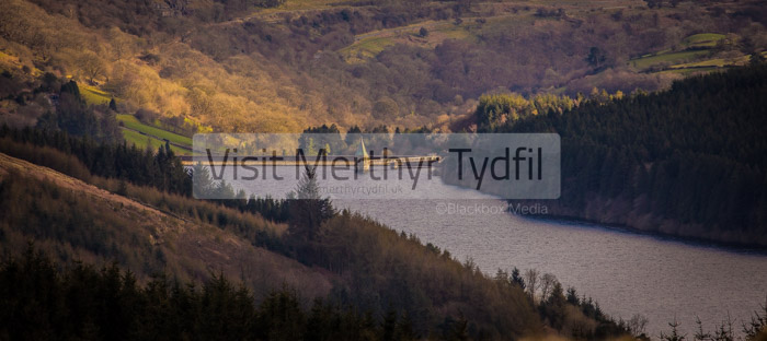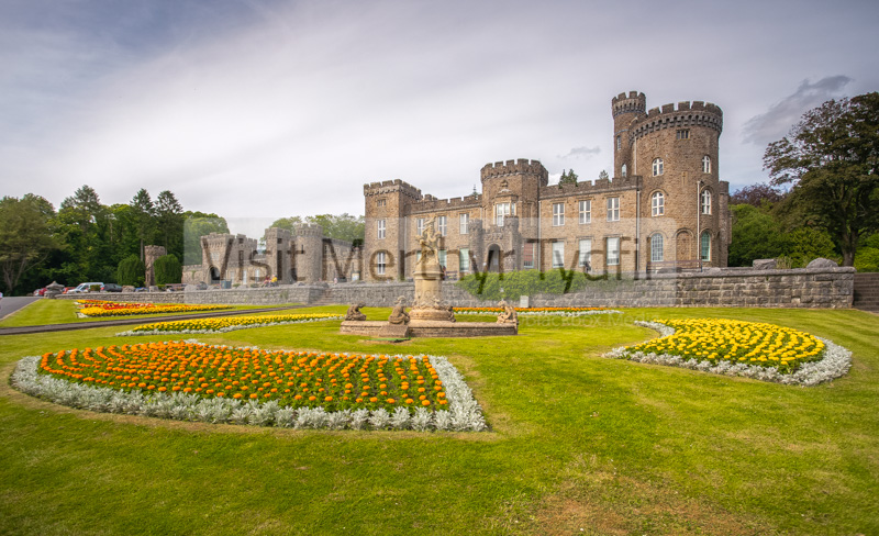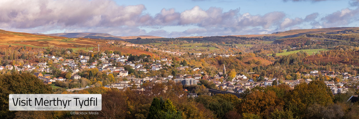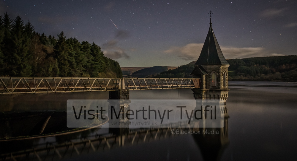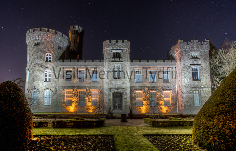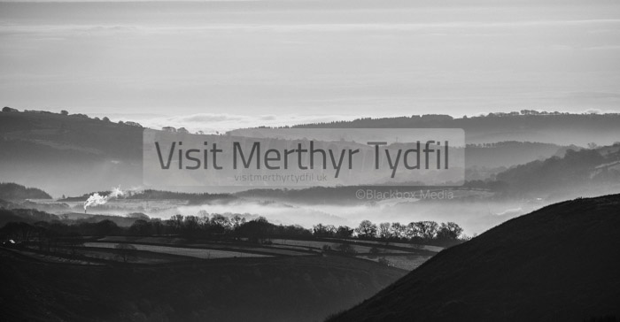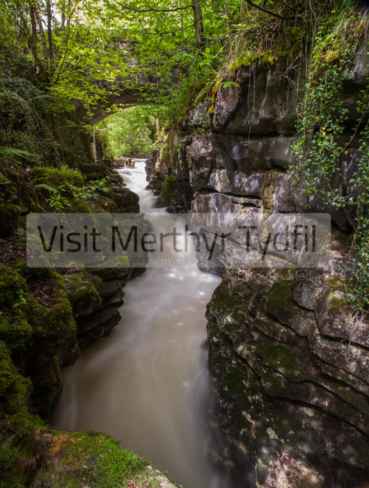 A unique view of the Cefn Coed viaduct with Cyfarthfa Castle framed in one of the arches